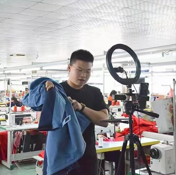 除了農產品,磁山二街服裝廠的實地直播也別具特色。服裝廠經理在生產車間內,手持制作好的衣服,向觀眾展示衣服的版型、顏色等特點,身后是忙碌工作的工人,這種直觀的展示方式極大地激發了觀眾的購買欲望。河北新絲路制衣有限公司服裝廠經理申匯杰表示:“通過線上線下相結合的銷售模式,產品銷量大增,工人收入提高了,衣服的知名度也提升了,還讓附近村民對‘一品一播’產生了濃厚興趣。而且,這種模式讓我們更了解市場需求,明確了生產方向。”