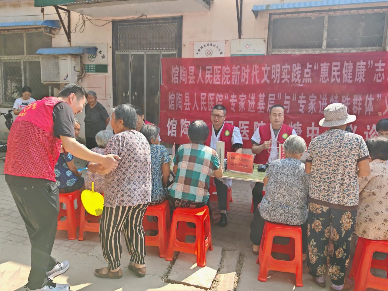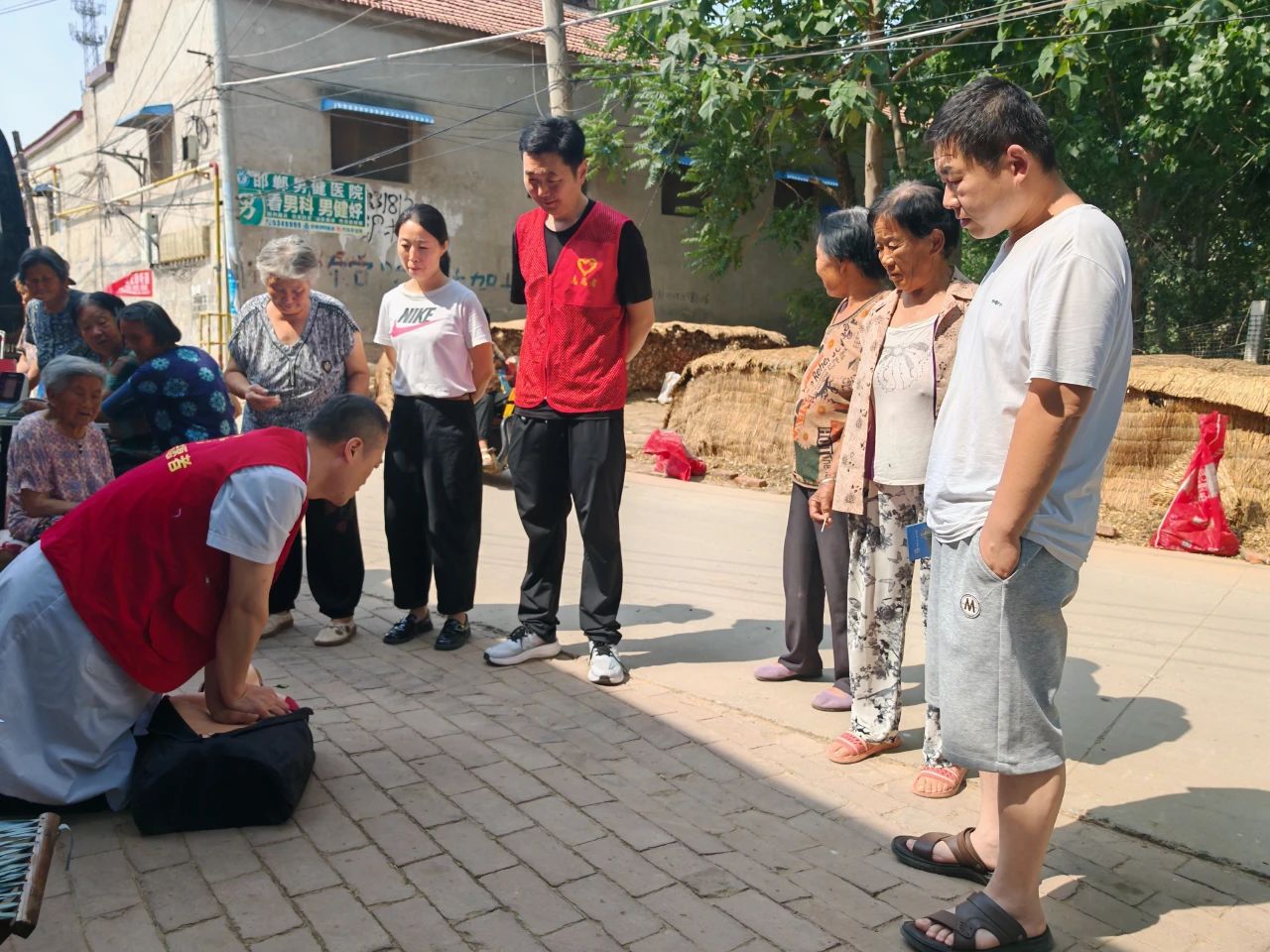 6月10日上午,邯鄲館陶縣人民醫院惠民志愿服務隊深入王橋鎮吉固庵村,開展“夏收季節送健康”義診活動,為忙碌在農忙一線的村民送去貼心醫療服務,普及健康知識,助力夏收安全生產。