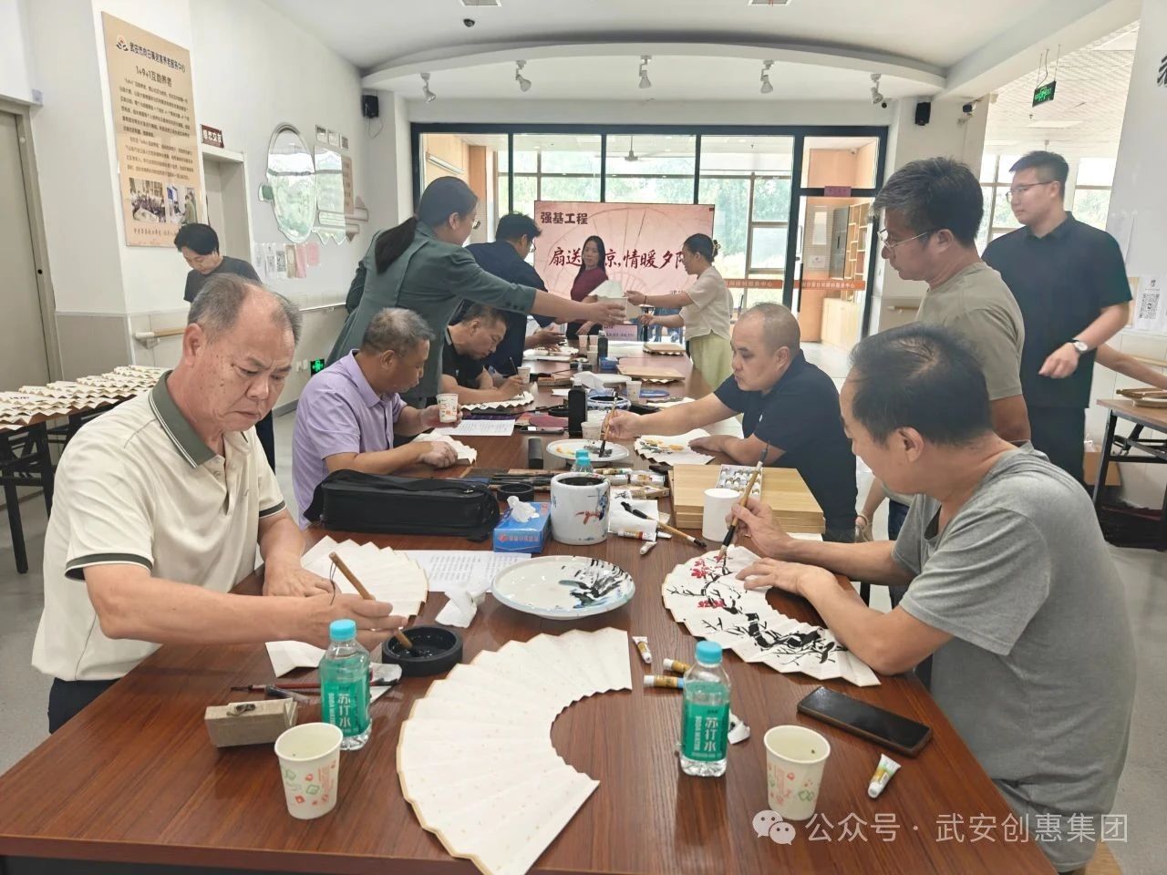 翰墨飄香融雅韻,丹青落筆見禪機。6月11日下午,由邯鄲武安市文聯和向日葵養老服務公司聯合組織舉辦的“扇送清涼,情暖夕陽”書法、繪畫(扇面)創作活動在向日葵養老服務公司老年活動中心拉開帷幕。武安市文聯副主席、美術家協會主席于冰,書法協會主席韓增富攜部分協會會員參與創作,向日葵養老服務公司總經理袁紅梅熱情接待。