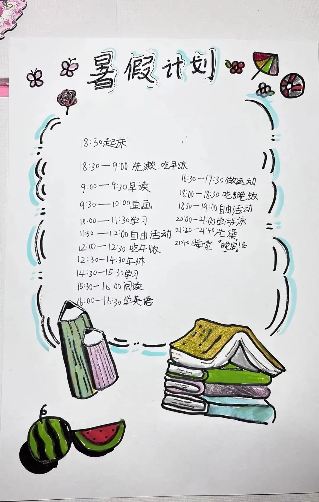 暑假的畫卷已徐徐展開,一分份作息計劃表是孩子們的“成長指南針”。期待開學時,看到每個孩子都帶著滿滿的收獲與成長,眼里有光,腳下有力,元氣滿滿地回到學校的懷抱。(鄭宏偉)