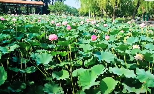 白天賞荷之余,公園還提供多種休閑選擇。游客可在綠樹濃蔭下散步游玩、賞花拍照,享受夏日難得的清涼。公園周邊綠樹成蔭,為行人撐起天然的遮陽傘,蜿蜒的步道成為市民晨練和傍晚散步的理想場所。