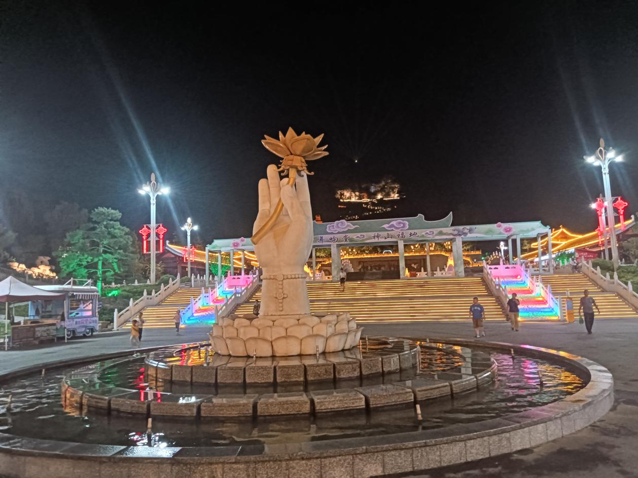 首先來到菩提廣場,這里早已被圍得水泄不通。人們的臉上洋溢著期待與興奮,眼神中閃爍著對未知精彩的渴望。忽然,一陣悠揚的音樂響起,水幕光影秀在廣場上驚艷登場。五彩斑斕的燈光投射在水幕之上,變幻出一幅幅美輪美奐的畫面。時而如漫天繁星閃爍,時而似山川河流奔騰,時而又像花朵綻放般絢麗多彩。水幕中的光影與音樂完美融合,仿佛將人們帶入了一個神秘的童話世界。我沉浸在這如夢似幻的景象中,心靈被這震撼的視覺盛宴深深觸動,仿佛所有的煩惱和疲憊都在這一刻煙消云散。