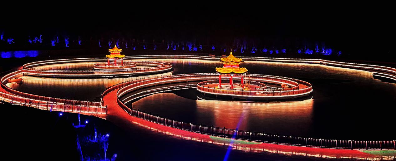 而大場景的音樂噴泉,則是這場夜游的又一亮點。噴泉隨著音樂的節奏高低起伏,水花在燈光的映照下五彩斑斕。時而如巨龍騰飛,時而如花朵綻放,時而又如仙女散花。音樂、噴泉和燈光完美結合,營造出一種如夢如幻的氛圍。孩子們在噴泉旁嬉笑玩耍,大人們則在一旁靜靜地欣賞,臉上洋溢著幸福的笑容。