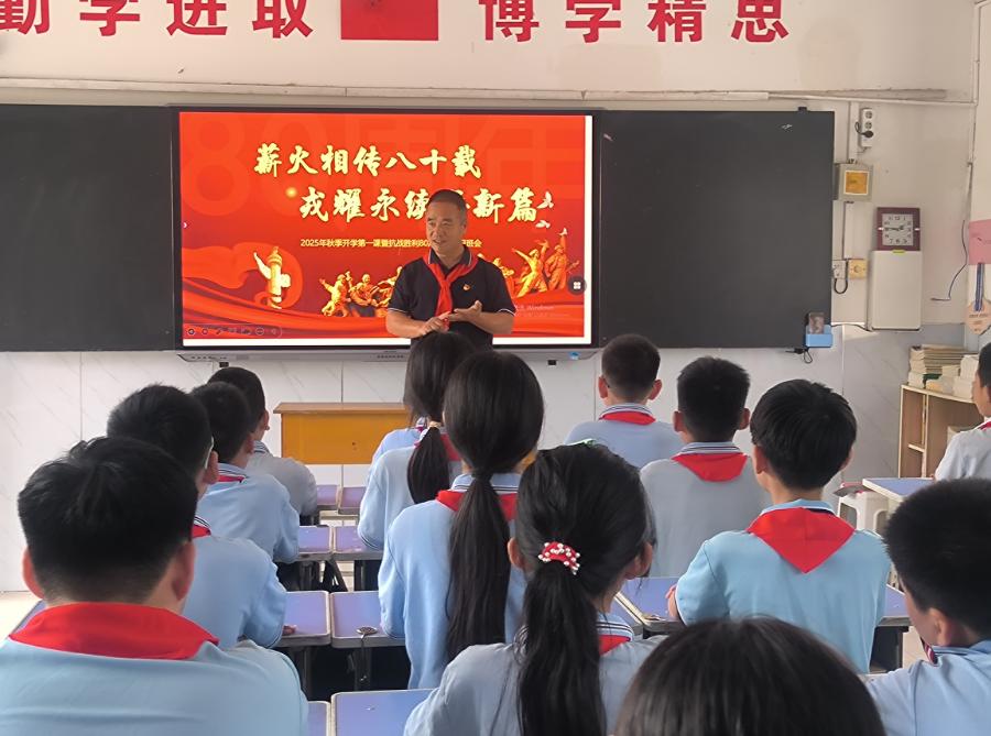 9月4日,邯鄲南井寨小學黨支部書記梁彥良為學生講授了一堂意義非凡的思政課,以此紀念抗日戰爭勝利80年,同時開啟 2025 年秋季開學思政第一課。