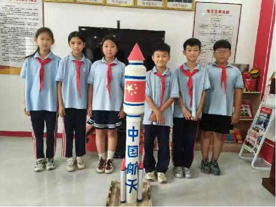 一張張普通的彩紙,經過同學們靈巧的小手,變成了中國航天火箭模型。