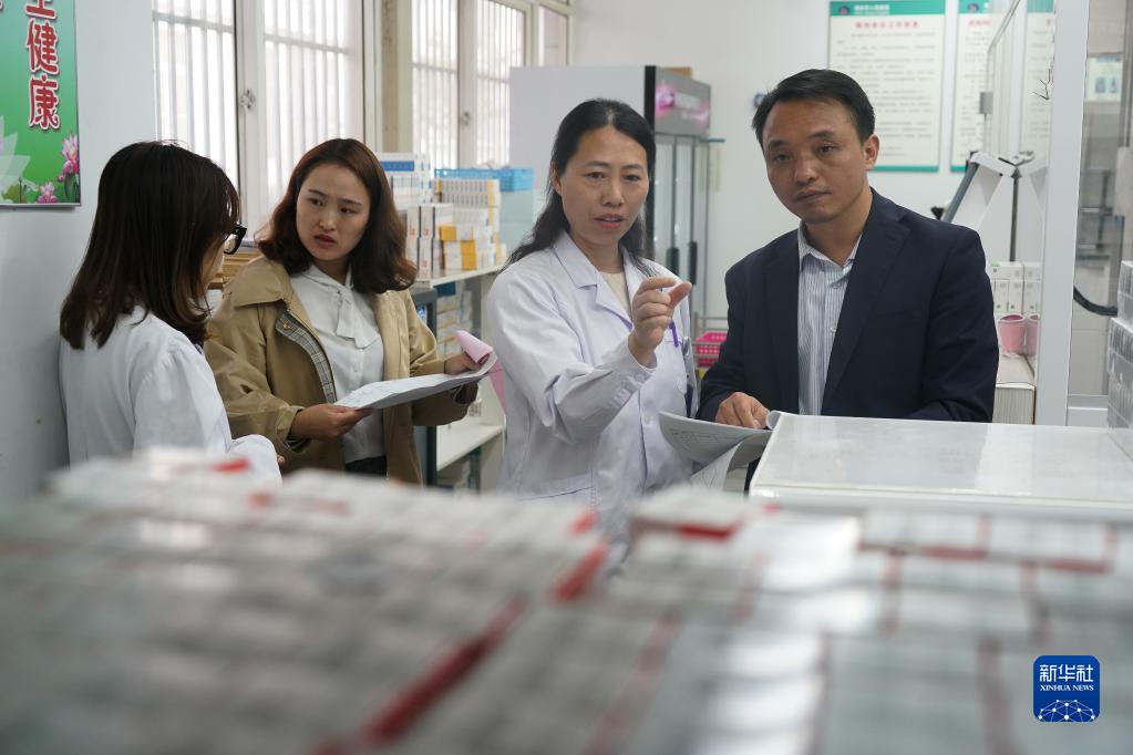 2019年10月31日,在江蘇省海安市人民醫院,巡察組工作人員在藥房進行巡察,醫療衛生系統是此輪巡察重點。新華社記者 季春鵬 攝