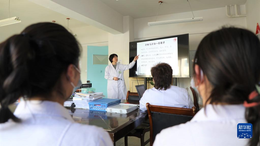 天津市中心婦產科醫院婦產專業副主任醫師饒陽給甘南州人民醫院婦產科的醫生進行培訓(2021年1月15日攝)。新華社記者 張睿 攝