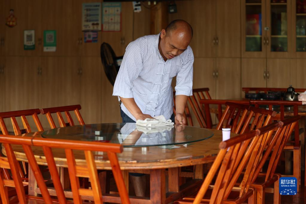 在湖南省湘西土家族苗族自治州十八洞村,楊正邦在自家農家樂打掃衛生(2022年7月2日攝)。新華社記者 薛宇舸 攝