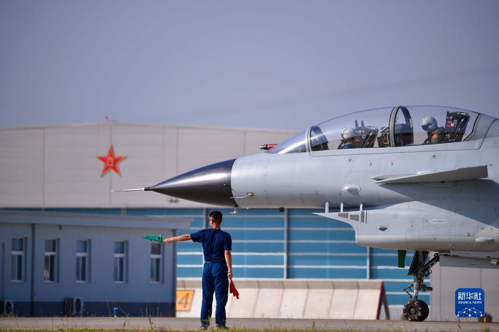 在空軍石家莊飛行學院某旅機場,空軍首批三代機飛行學員駕駛首批列裝空軍院校的殲-10戰機準備起飛(2021年9月10日攝)。新華社發(李敏 攝)