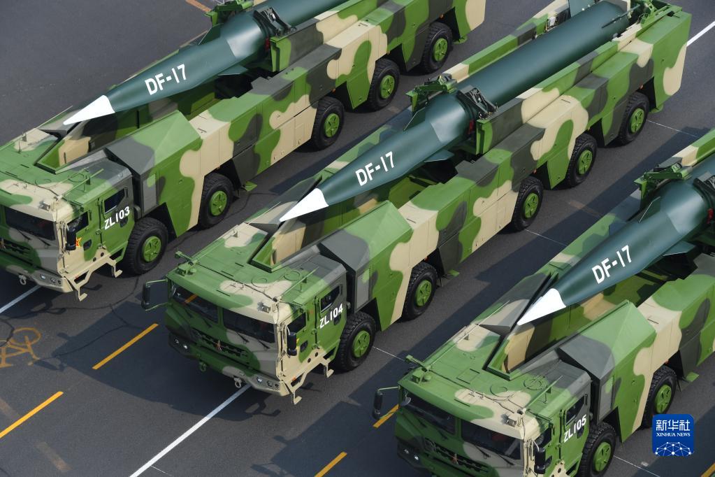2019年10月1日上午,慶祝中華人民共和國成立70周年大會在北京天安門廣場隆重舉行。這是東風-17常規導彈方隊。新華社記者 潘昱龍 攝