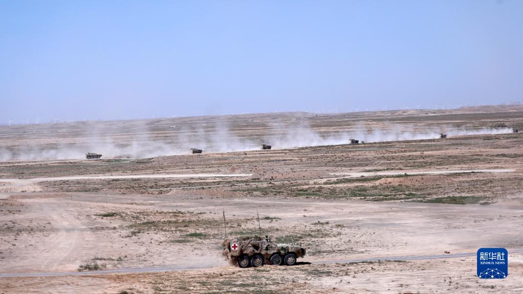 在“西部·聯合-2021”演習第一次實兵實裝實彈合練中,野戰救護力量為聯合任務部隊提供保障(2021年8月5日攝)。新華社記者 劉芳 攝