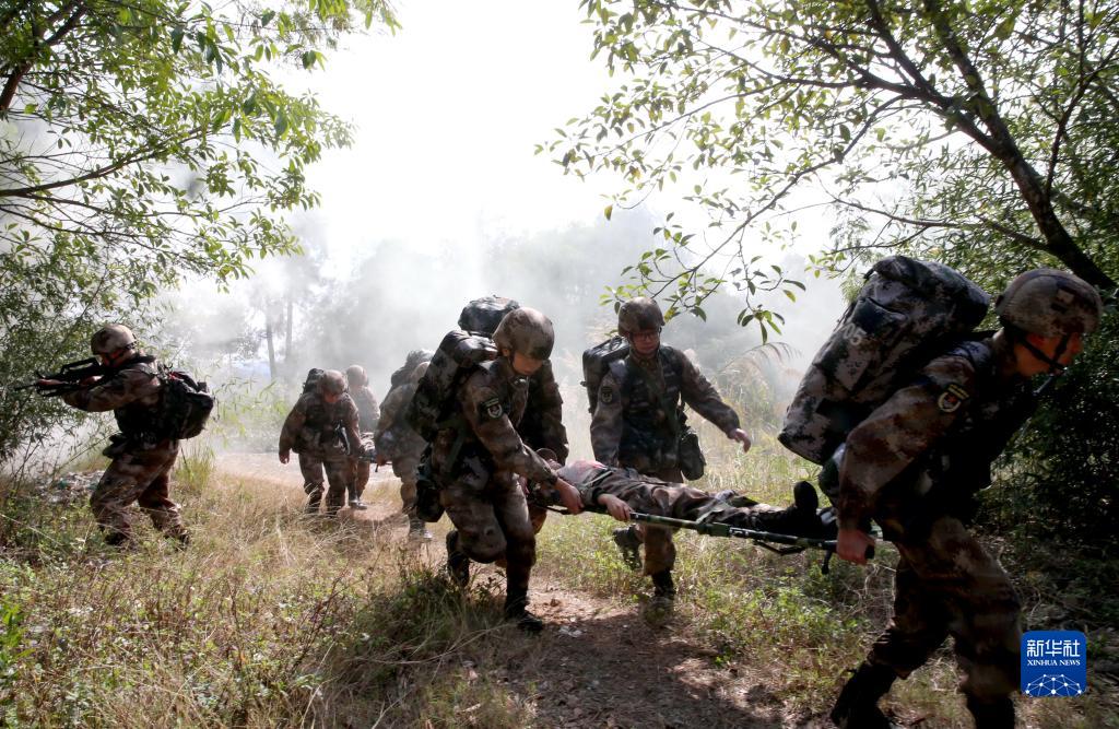 無錫聯勤保障中心第910醫院將野戰醫療隊拉到閩南某山區,在陌生地域開展實戰化衛勤訓練(2022年1月4日攝)。新華社發(巴濤 攝)