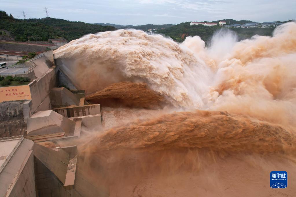 2021年10月12日拍攝的黃河小浪底水庫(kù)泄洪場(chǎng)景(無(wú)人機(jī)照片)。新華社記者 尚昆侖 攝