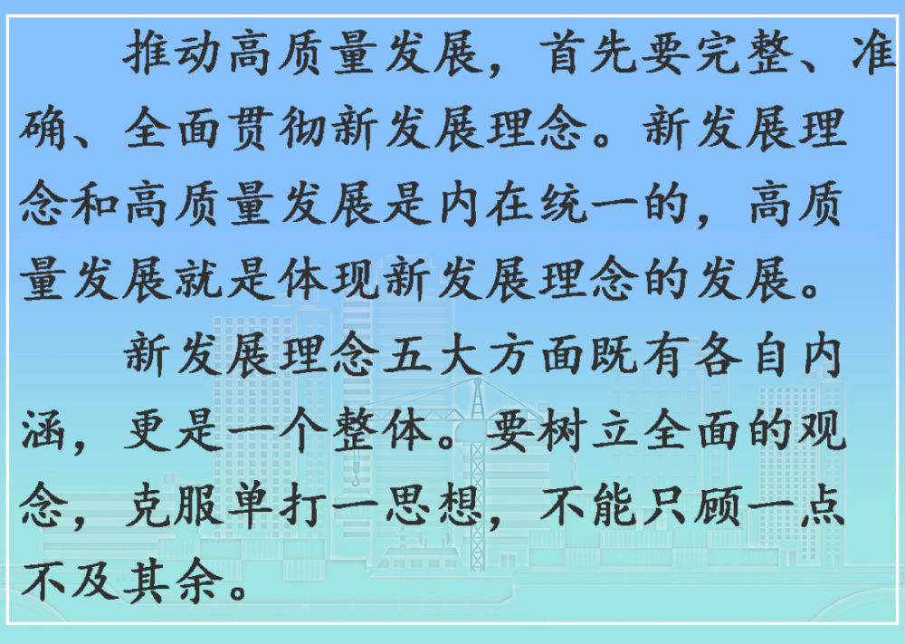黨的十九屆六中全會審議通過的《中共中央關于黨的百年奮斗重大成就和歷史經驗的決議》指出:“黨中央強調,貫徹新發展理念是關系我國發展全局的一場深刻變革,不能簡單以生產總值增長率論英雄,必須實現創新成為第一動力、協調成為內生特點、綠色成為普遍形態、開放成為必由之路、共享成為根本目的的高質量發展,推動經濟發展質量變革、效率變革、動力變革。”