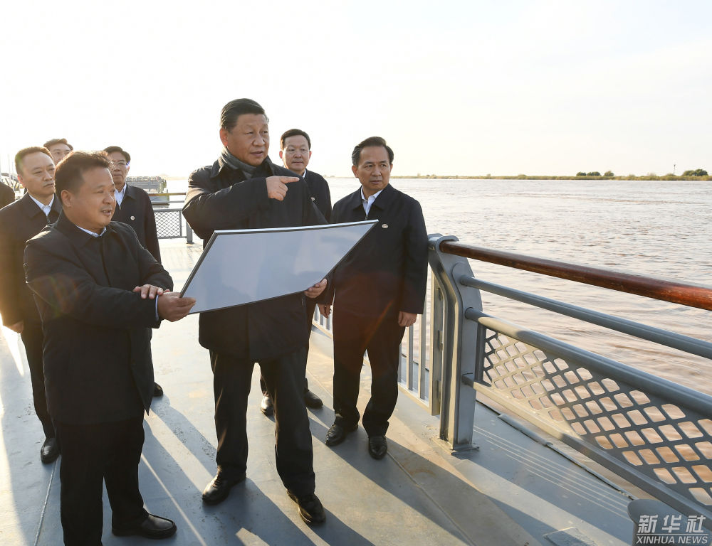 ↑2021年10月22日下午,習近平在山東省濟南市主持召開深入推動黃河流域生態保護和高質量發展座談會并發表重要講話。這是座談會前,習近平20日下午在東營市黃河入海口考察。