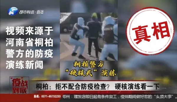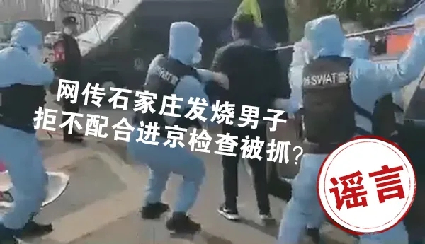 近日,網傳一段視頻,稱“一石家莊發燒男子,不配合進京檢查被抓”。經核實,該視頻為2020年2月河南桐柏警方開展的應急處突演練。