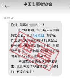 注意!這條以“中國志愿者協會”名義發布的疫情防控志愿者招募短信,是假的。