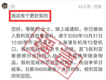 通過進一步檢索發現,類似的“招募短信”還有一則“敘利亞征兵帖”,因內容過于奇葩,一直是社交平臺公認的網絡段子。