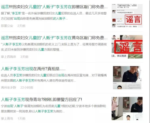 近日,網傳“人販子李玉芳以免費清洗油煙機的名義上門,實際上是為了拐孩子”的信息,在武安一些小區業主群、朋友圈迅速流傳。