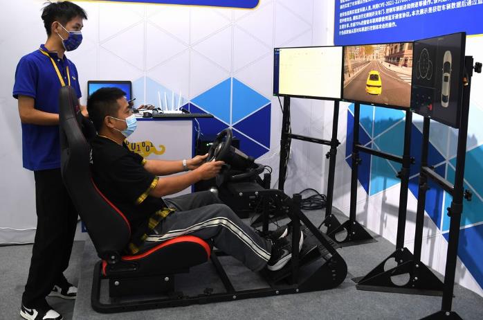 9月4日,一家參展企業代表在2022年國家網絡安全宣傳周網絡安全博覽會上演示使用車載網絡安全科技產品。新華社記者 劉軍喜 攝