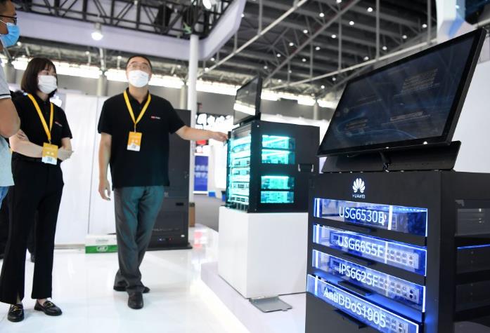 9月4日,一家參展企業代表在2022年國家網絡安全宣傳周網絡安全博覽會上介紹防火墻產品。新華社記者 劉軍喜 攝