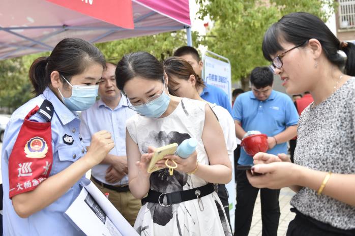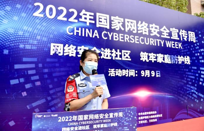 9月9日,在安徽省合肥市廬陽區大楊鎮舉辦的2022年國家網絡安全宣傳周網絡安全進社區活動上,民警為居民介紹防詐騙知識。新華社發(葛傳紅 攝)