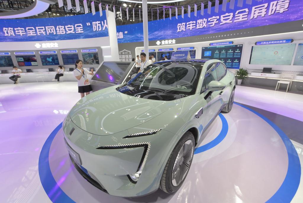 2023年國(guó)家網(wǎng)絡(luò)安全宣傳周網(wǎng)絡(luò)安全博覽會(huì)現(xiàn)場(chǎng)展示的智能網(wǎng)聯(lián)汽車(chē)(9月11日攝)。新華社記者林善傳 攝