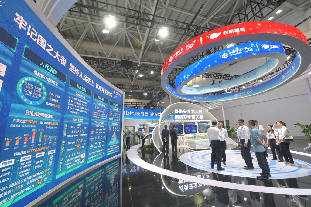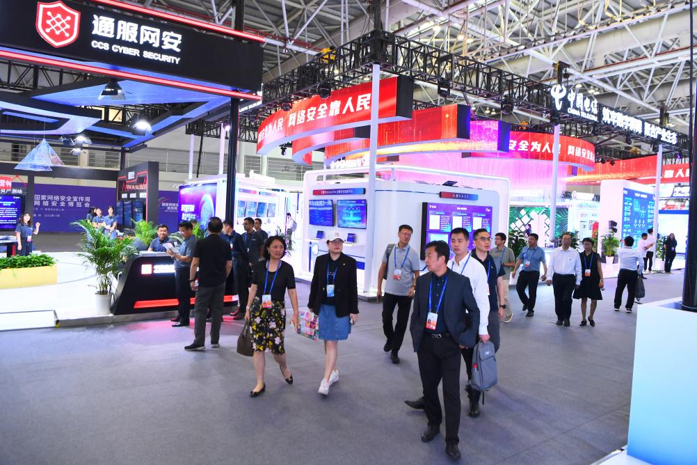 9月11日,嘉賓在2023年國(guó)家網(wǎng)絡(luò)安全宣傳周網(wǎng)絡(luò)安全博覽會(huì)上參觀(guān)。新華社記者姜克紅 攝
