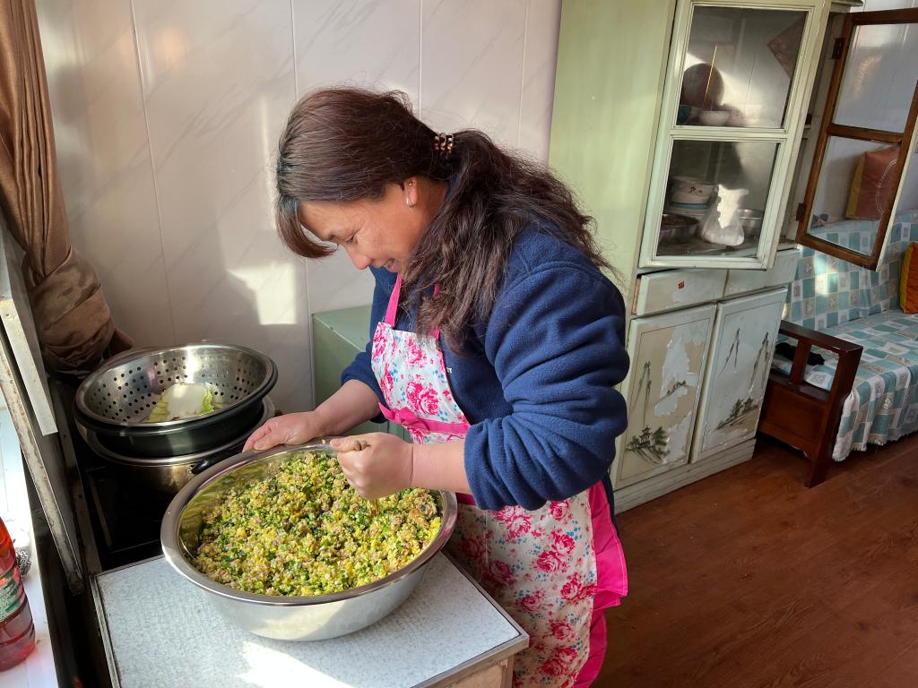 安毓飛的妻子準備包餃子。(新華社記者張磊攝)