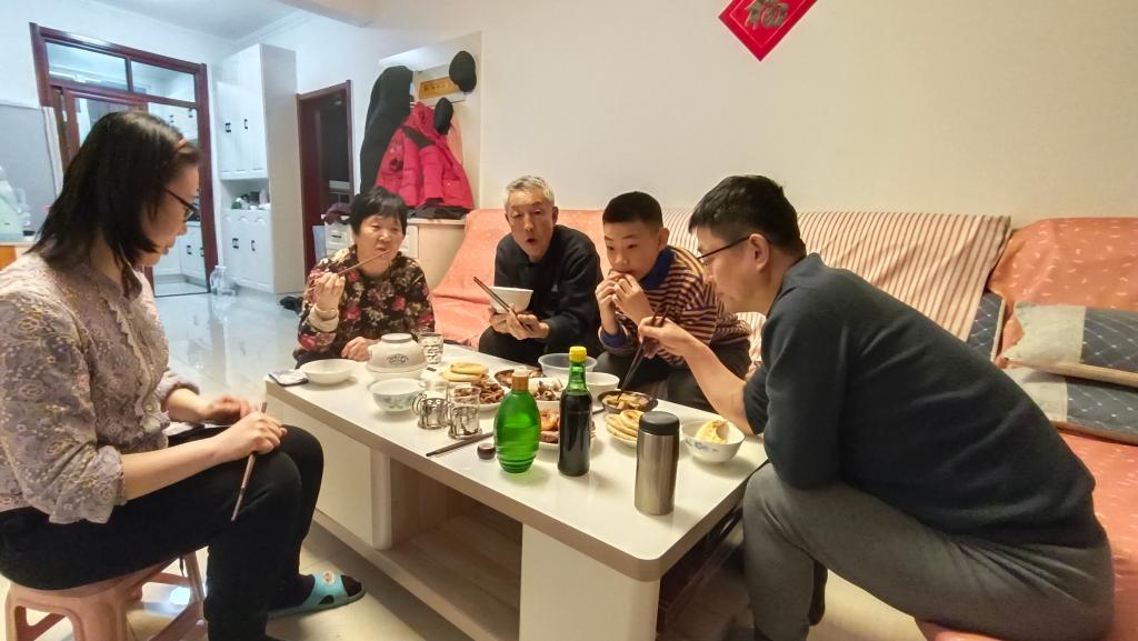 陸增文和家人在吃年夜飯。(受訪者供圖)