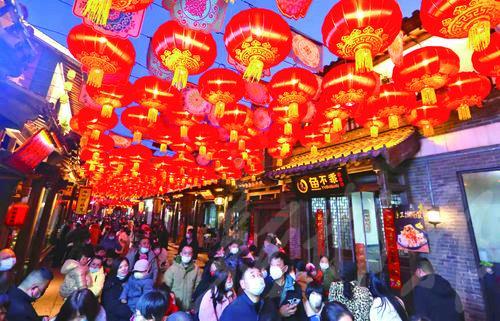 春節期間游客在涉縣赤水灣古鎮內觀賞大紅燈籠。邯鄲新聞傳媒中心記者 胡曉華 攝
