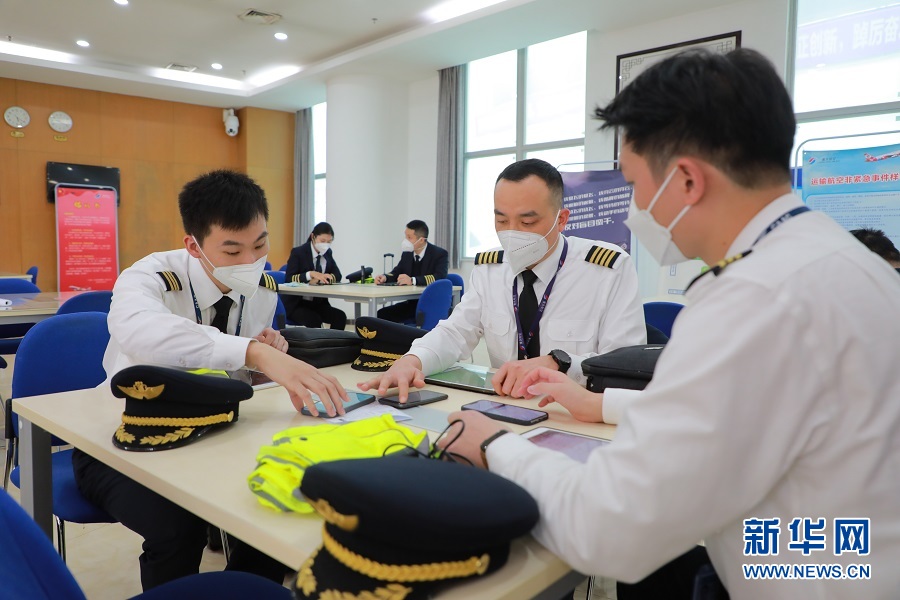 在重慶航空的飛行準備室,菅士博和另外2名飛行員正在進行航前準備。測量體溫、呼氣測量酒精濃度、檢查飛行箱物品……他們的準備過程緊張有序。