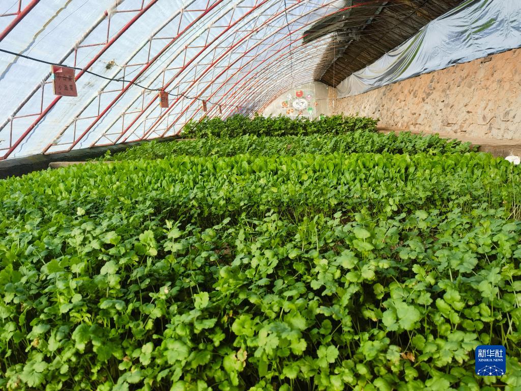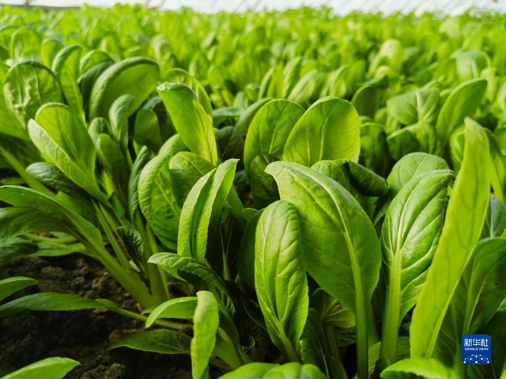 地處戈壁深處的北部戰(zhàn)區(qū)陸軍某邊防旅清河口邊防連蔬菜大棚內綠意盎然(1月27日攝)。 新華社發(fā)(張祥 攝)