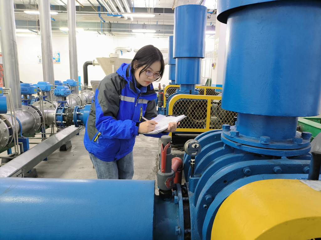 武漢大東湖深隧項目預處理站站長韓霜在檢修設備。(受訪者供圖)