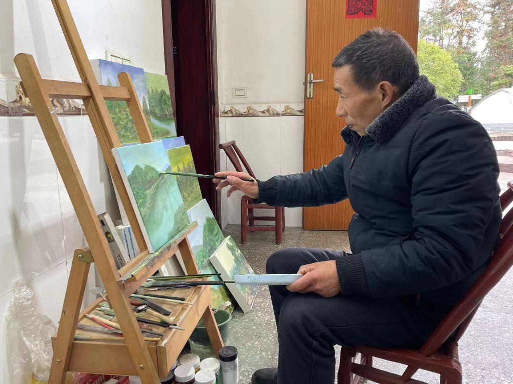 萍鄉市湘東區湘東鎮江口村村民陳云發在作畫。新華社記者賴星 攝