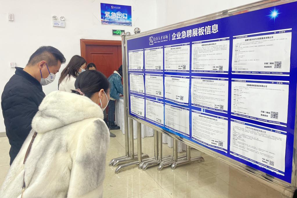 招聘會上,求職者在企業急聘展板前尋找崗位信息。(新華社記者武江民 攝)