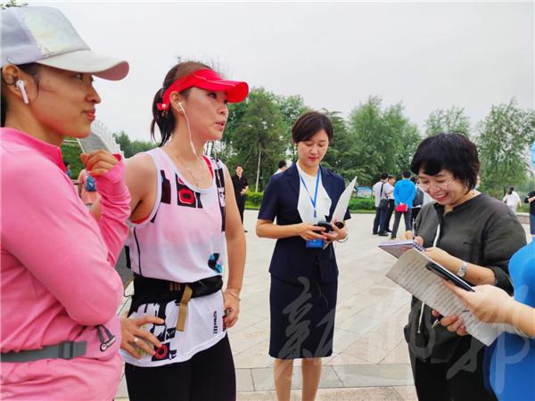 河北日?qǐng)?bào)記者采訪慢跑團(tuán)成員