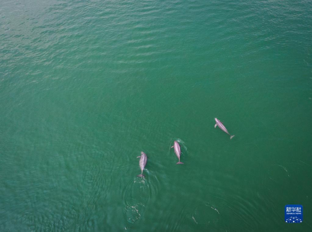 順著戴年華手指的方向,記者看到,粼粼碧波中,好幾頭長江江豚正迎浪嬉戲。它們時而躍水翻騰,時而噴水換氣,幾頭幼豚繞著母親在水中游動,如影隨形,其樂融融。