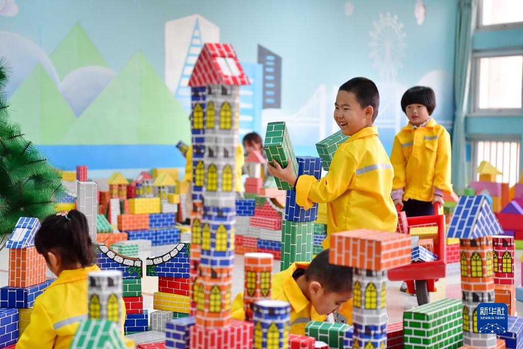 河北遷安市光彩幼兒園惠安分園的小朋友在園內職業體驗區玩耍(2019年12月5日攝)。新華社記者 牟宇 攝