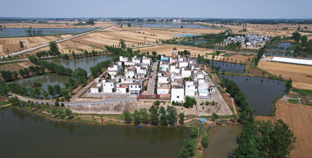 這是2022年5月30日拍攝的安徽省阜陽(yáng)市阜南縣曹集鎮(zhèn)利民村西田坡莊臺(tái)(無(wú)人機(jī)照片)。新華社發(fā)(王彪 攝)