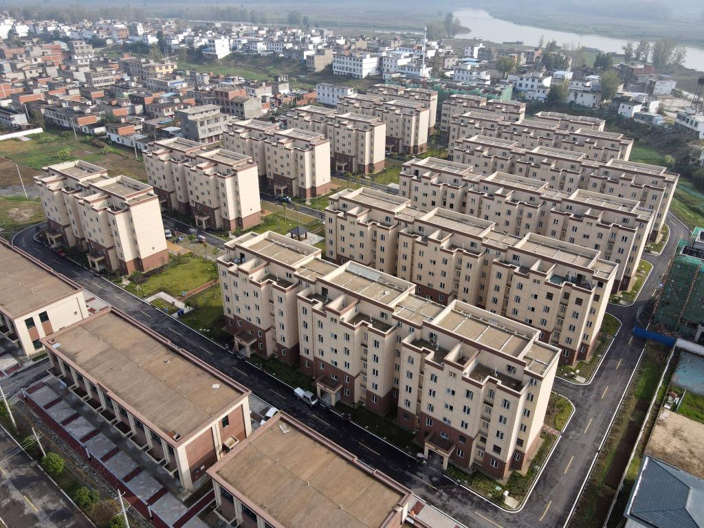 這是2020年10月16日拍攝的阜南縣王家壩鎮(zhèn)淮上社區(qū)的莊臺(tái)疏解降容工程居民安置點(diǎn)(無(wú)人機(jī)照片)。新華社記者 周牧 攝