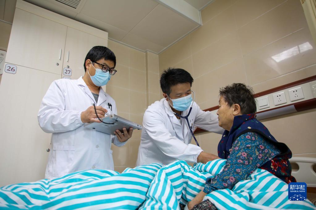安徽省明光市中醫院醫生在病房查房(2022年10月2日攝)。新華社記者 曹力 攝