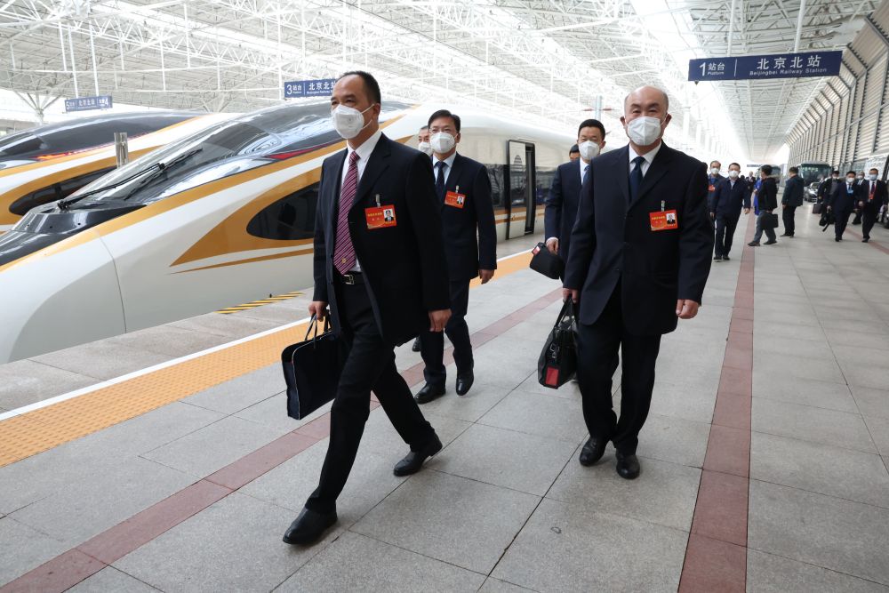 10月13日,來自內蒙古自治區的黨的二十大代表乘高鐵抵達北京北站。這是當日首個抵京的京外代表團。新華社記者 張玉薇 攝