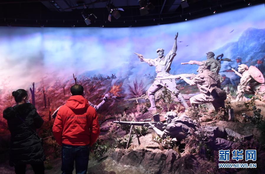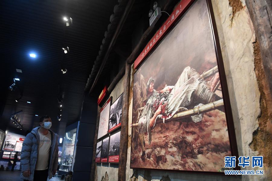 參觀者在廣西全州紅軍長征湘江戰役紀念館觀看展覽(2月3日攝)。新華社記者 陸波岸 攝