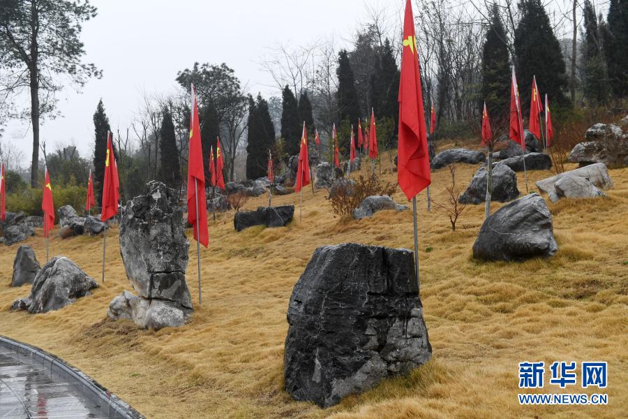 這是廣西灌陽縣湘江戰役新圩阻擊戰酒海井紅軍紀念園內的烈士墓(2月2日攝,無人機照片)。新華社記者 陸波岸 攝