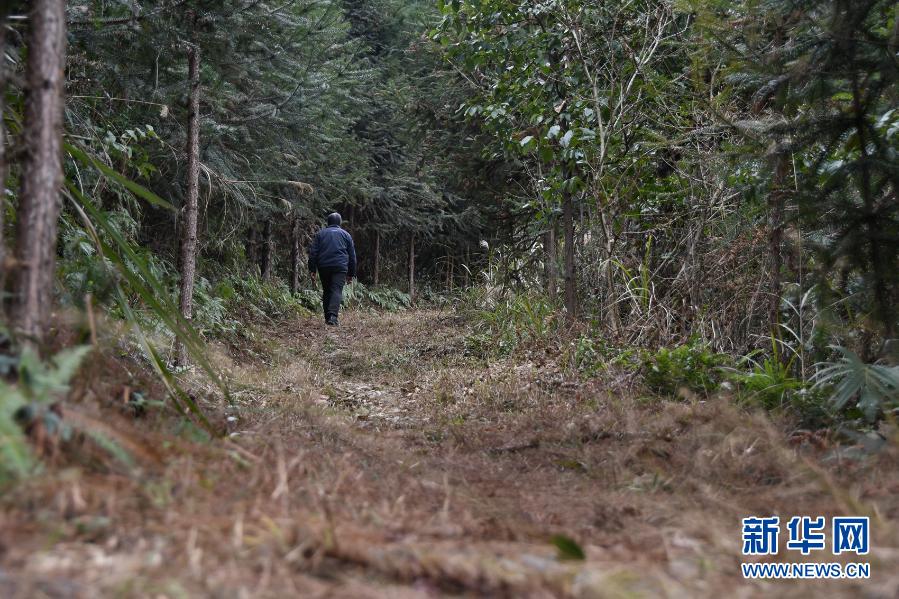 58歲的兵書閣村農民吳澤文走在紅軍當年走過的路上,這條名為“花界”的路如今還保留著當年紅軍走過時的樣子(1月29日攝)。新華社記者 周勉 攝