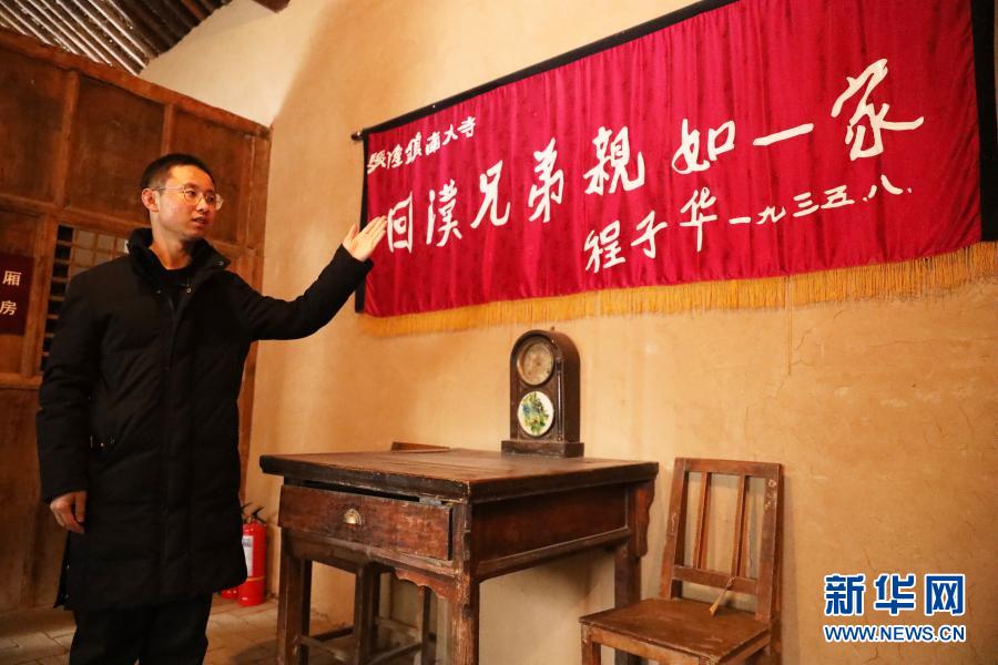 這是1935年紅二十五軍送給單家集村的錦匾(1月26日攝)。新華社記者 盧鷹 攝