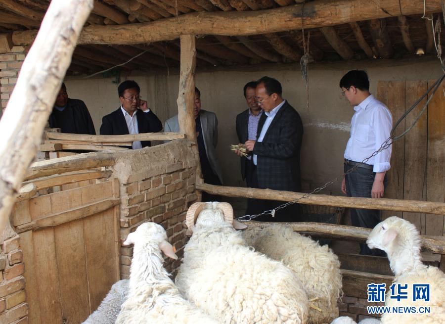 柴生芳(右二)在甘肅省臨洮縣八里鋪鎮檢查畜牧養殖合作社發展情況(資料照片)。新華社發