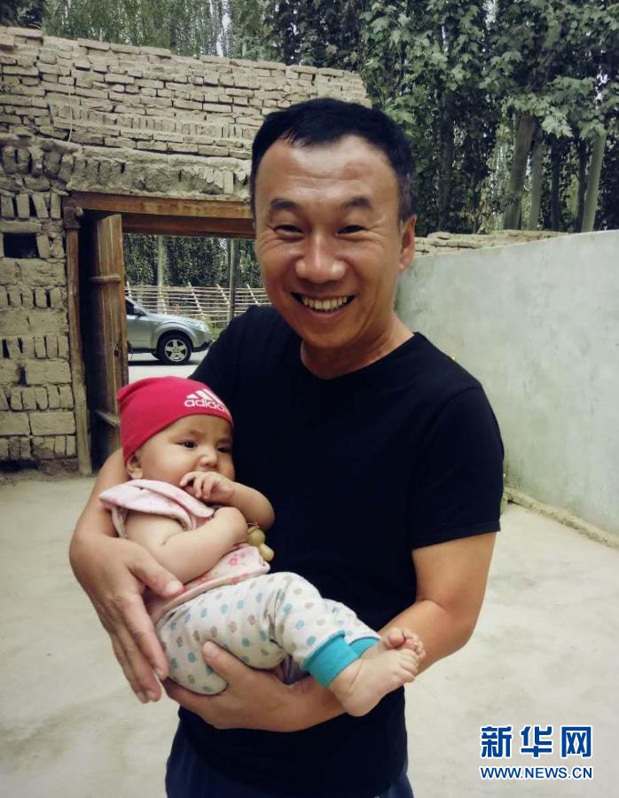 天津援疆干部席世明抱著維吾爾族小姑娘“小石榴”(資料照片)。新華社發