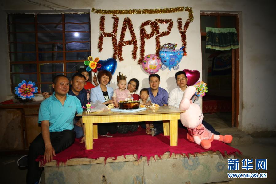 席世明(左二)和其他援疆干部一同給維吾爾族小姑娘“小石榴”過生日(資料照片)。新華社發